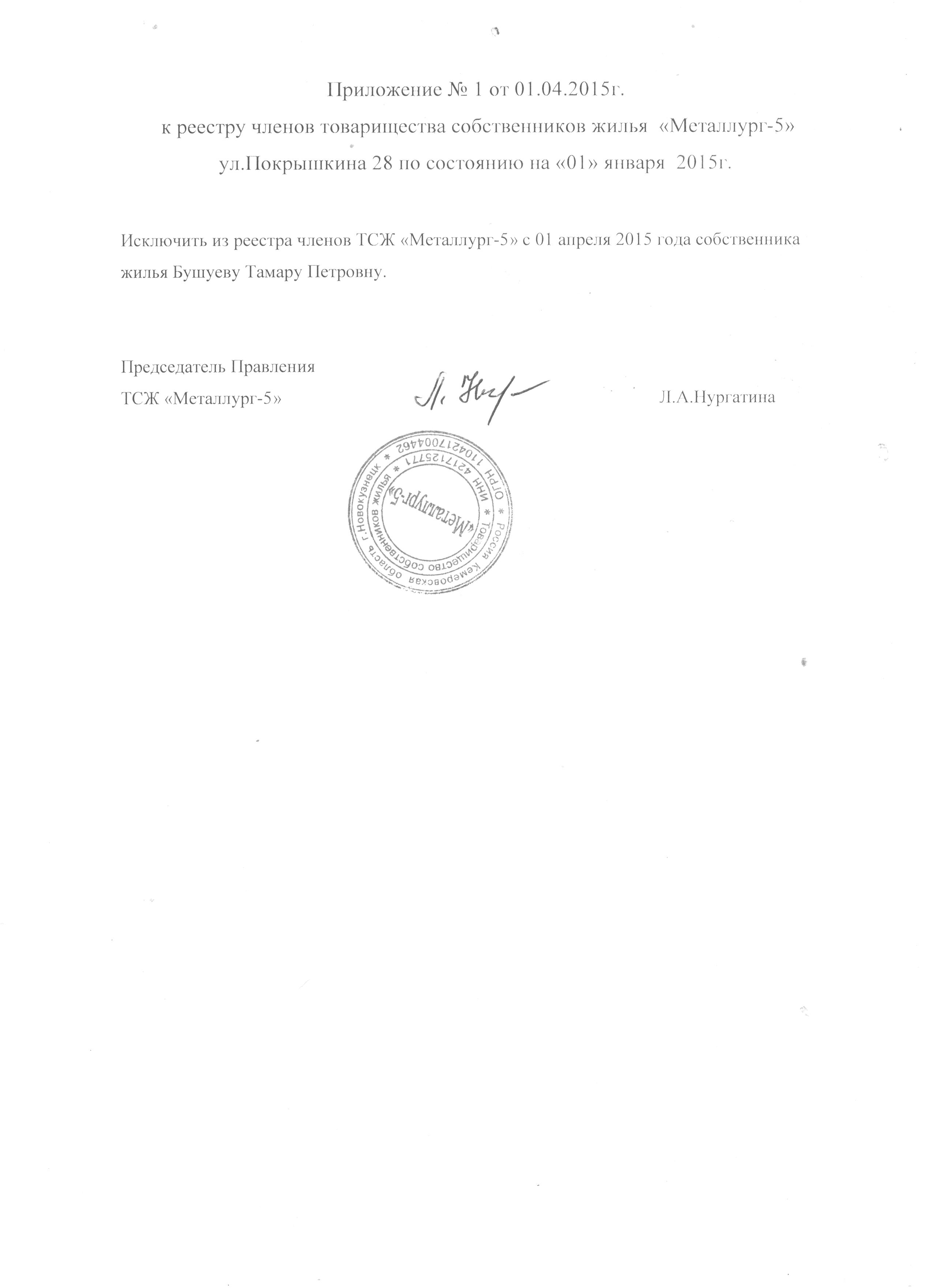![]() | Приложение к реестру ТСЖ Металлург-5 |