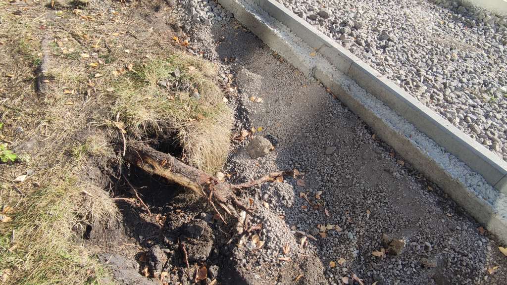 При рытье траншеи для прокладки кабеля к светильникам подрублены корни деревьев, в том числе хвойников. В случае повторения урагана ноября 2023 года, ветер выворотит из земли все эти деревья. При падении оставшиеся целыми корни, которые находятся глубже уровня прокопанной траншеи, разворотят укладываемый сейчас асфальт. Кто в этом будет виноват? Стихия? Нет. Виновато отсутствие комплексного подхода к проектированию благоустройства сквера.