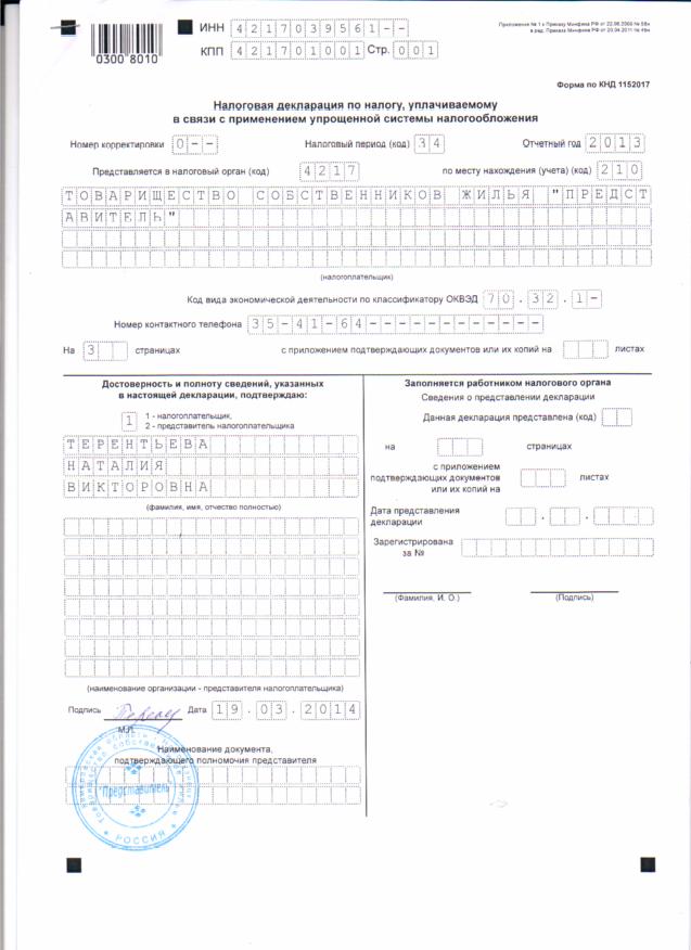 Отчет УСНО за 2013 год_ТСЖ Представитель_стр.01 |