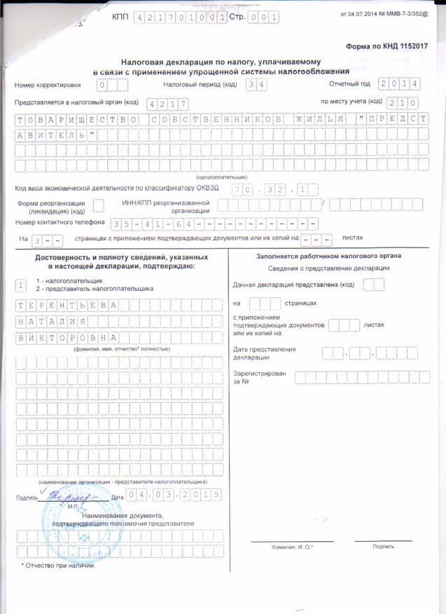 Отчет УСНО за 2014 год_ТСЖ Представитель_стр.01 |