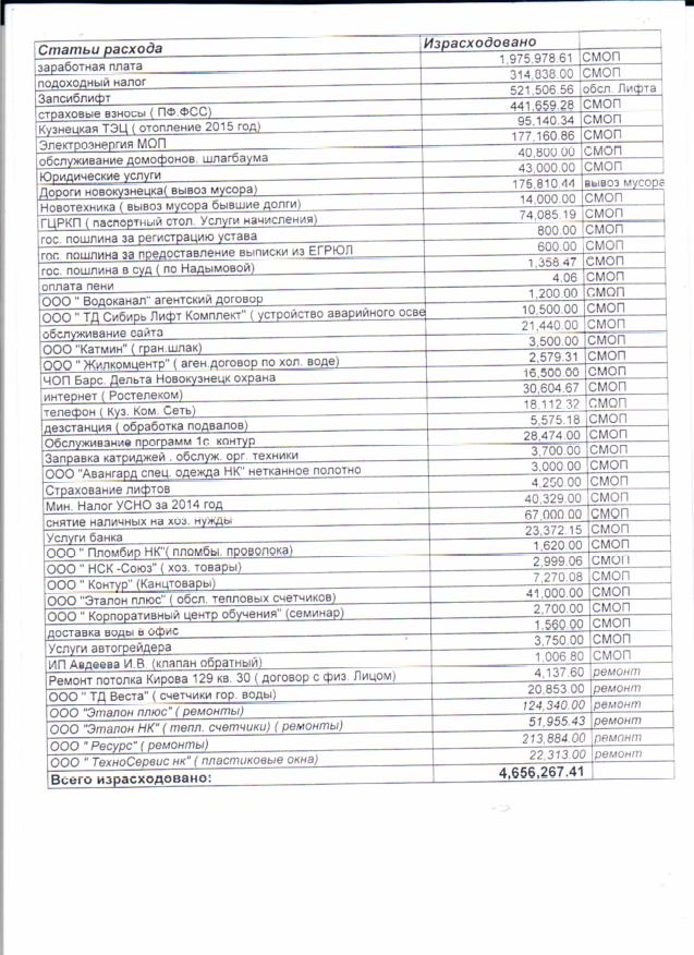 Отчет денежных средств_ТСН Представитель_2015_стр 1 |