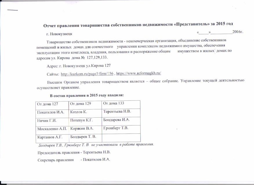 Отчет правления_ТСН Представитель_2015_стр 1 |
