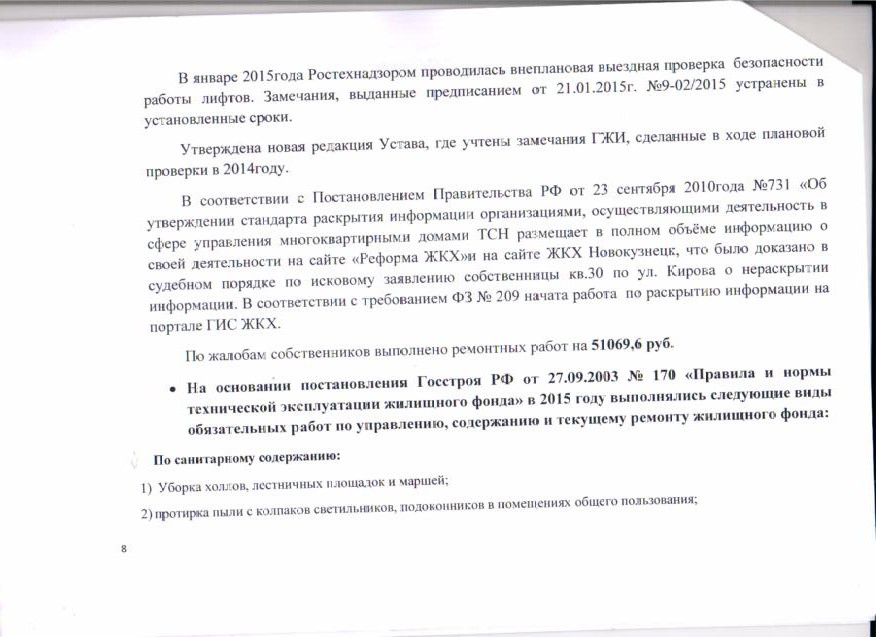 Отчет правления_ТСН Представитель_2015_стр 8 |
