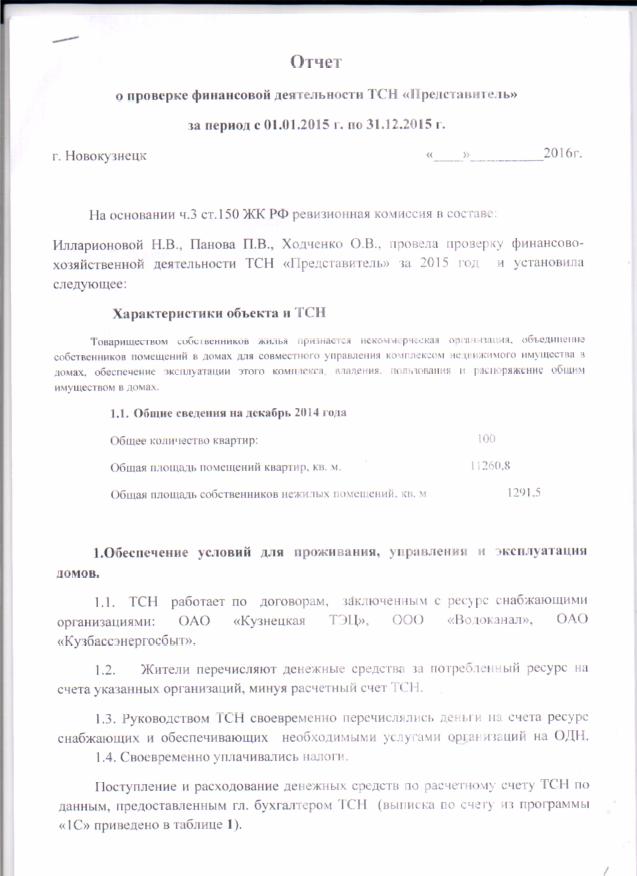 Отчет ревизионной комиссии_ТСН Представитель_2015_стр 1 |