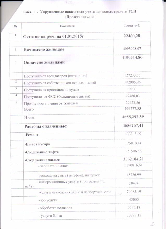 Отчет денежных средств_ТСН Представитель_2015_стр 2 |