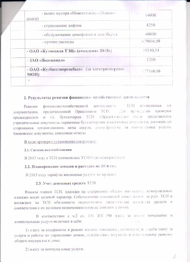 Отчет ревизионной комиссии_ТСН Представитель_2015_стр 3 |