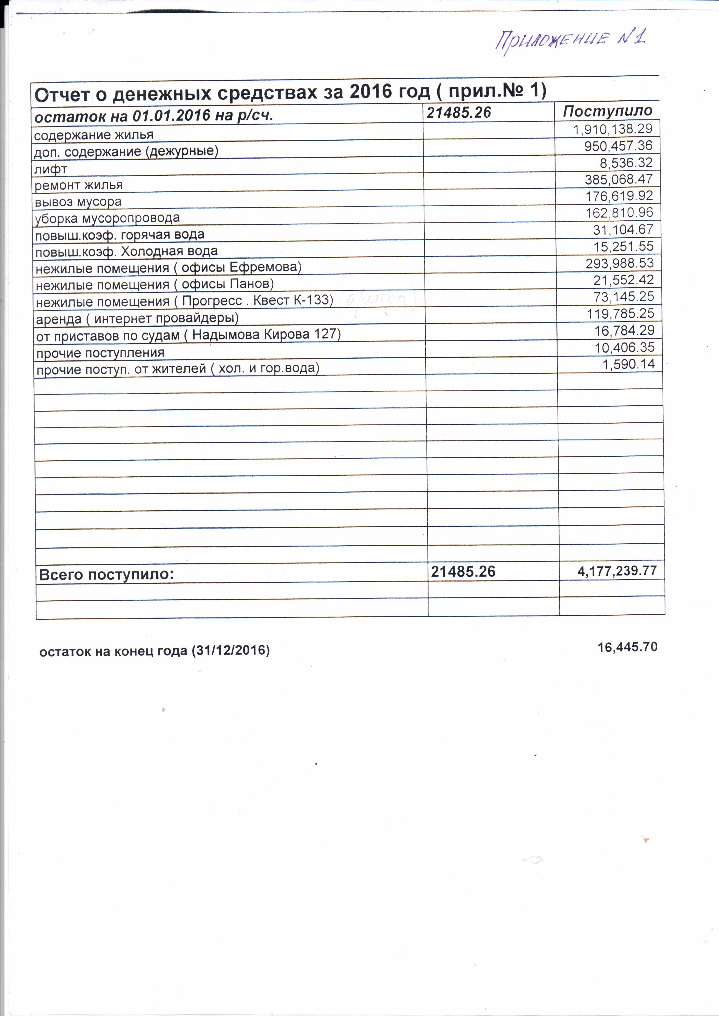 Отчет о ден. средствах 2016 ТСН стр.1 |