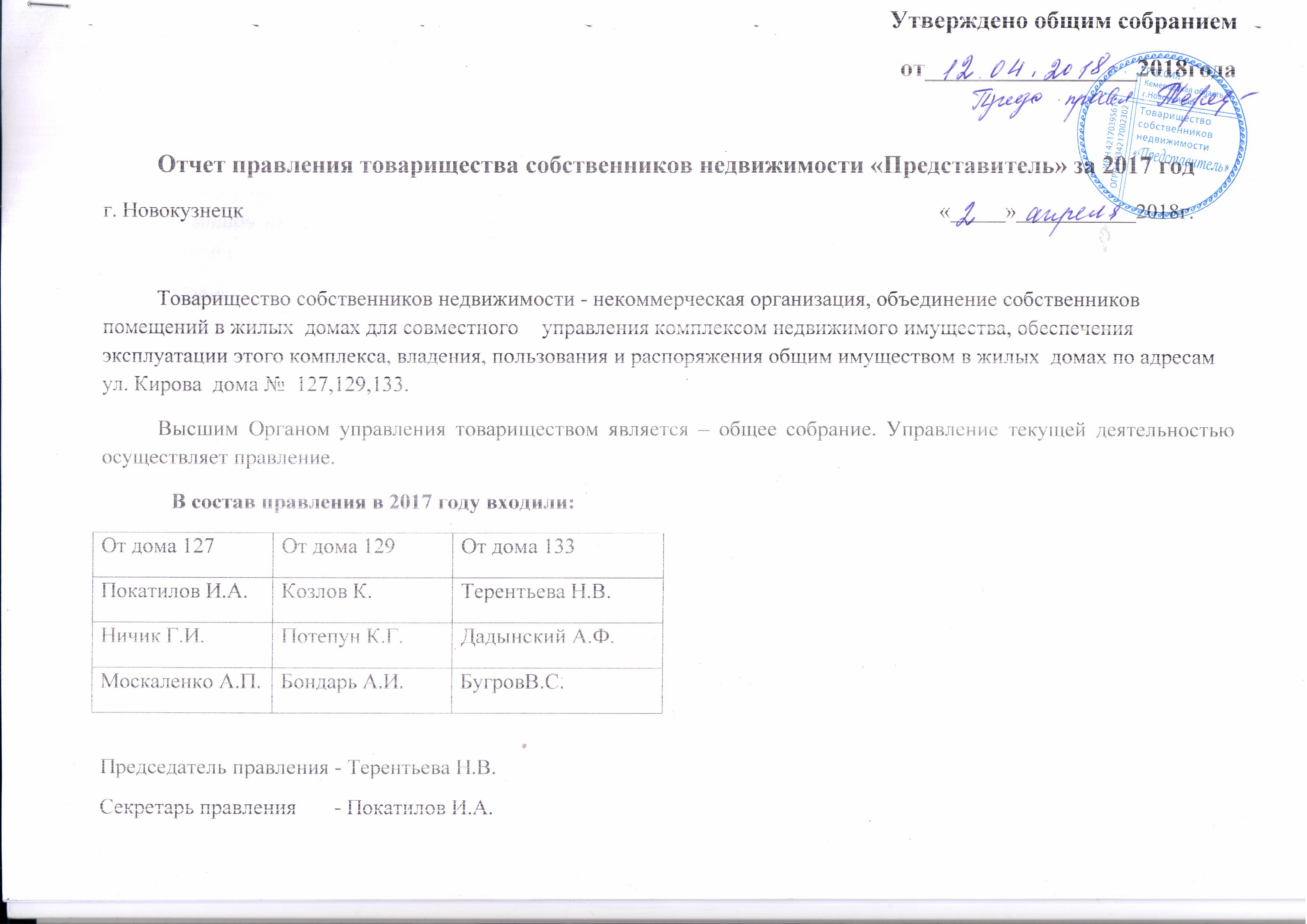 Отчёт правления за 2017год_ТСН Представитель_стр 1 |