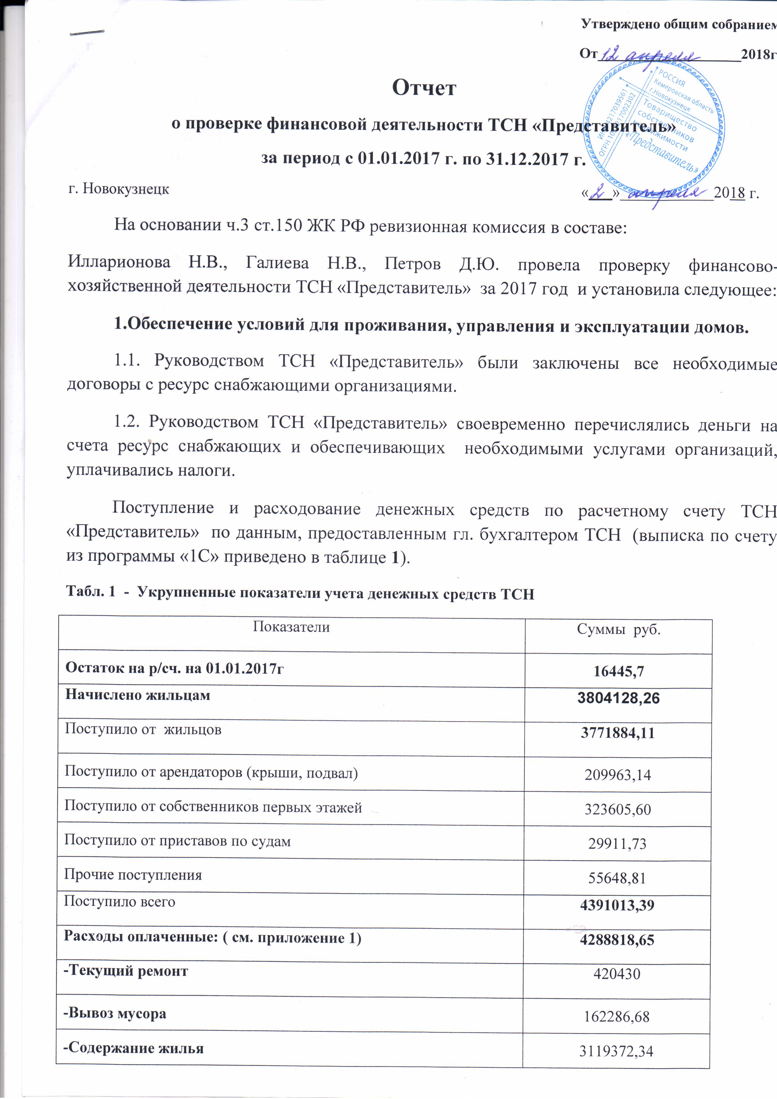 Отчёт ревизионной комиссии за 2017г_ТСН Представитель_стр 1 |