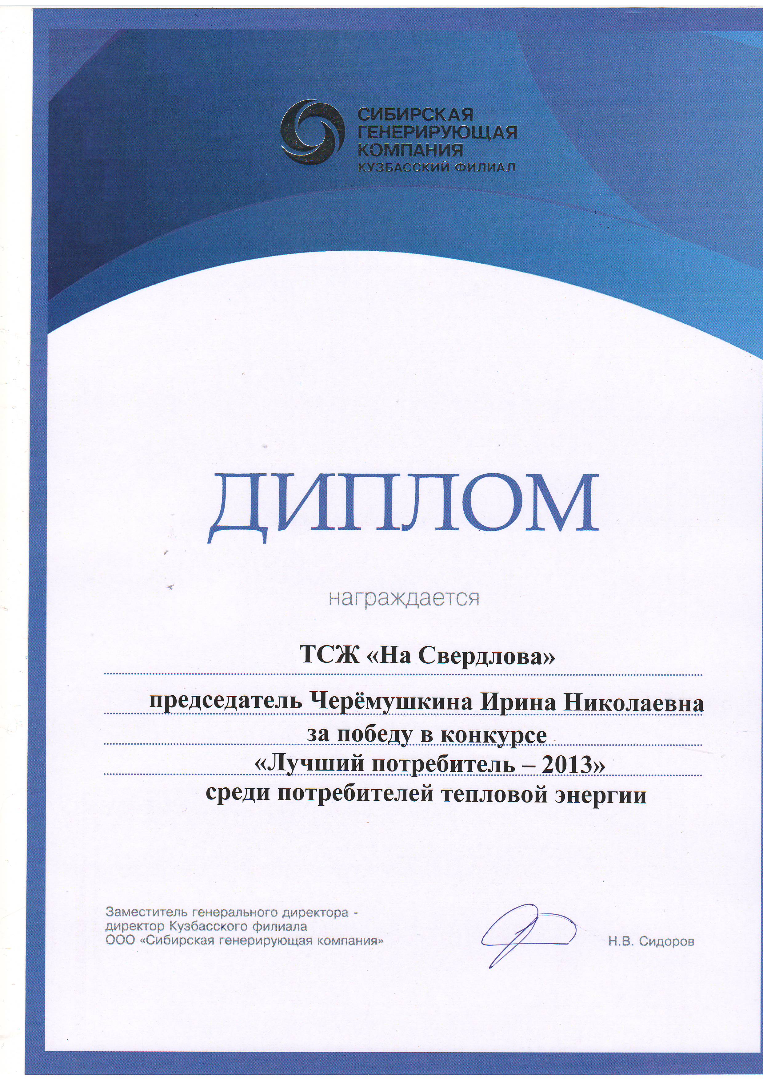 Благодарственное письмо от СГК ТСЖ На Свердлова_2013 год |