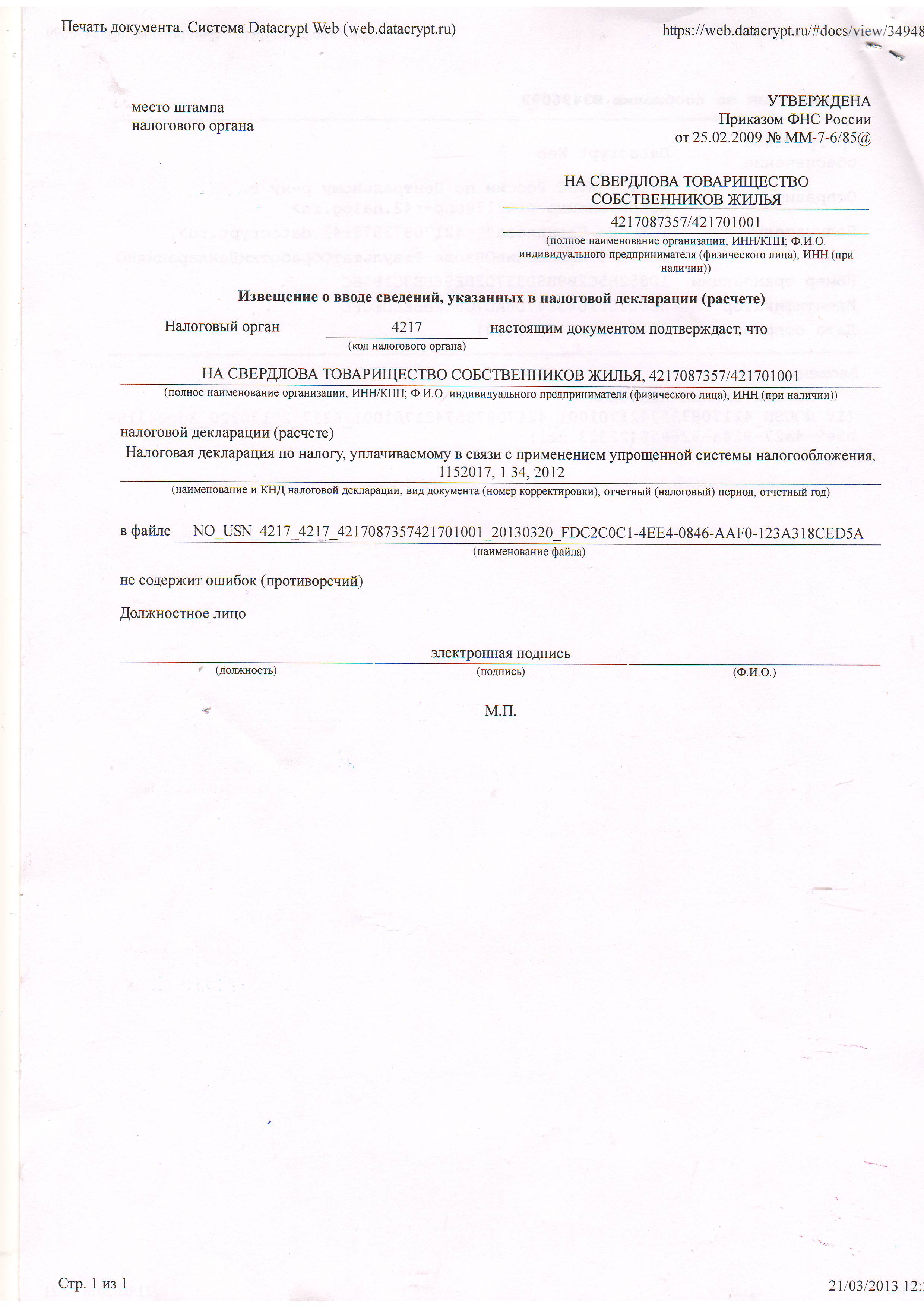 Налоговая декларация за 2012 год_ТСЖ На Свердлова_стр 1 |