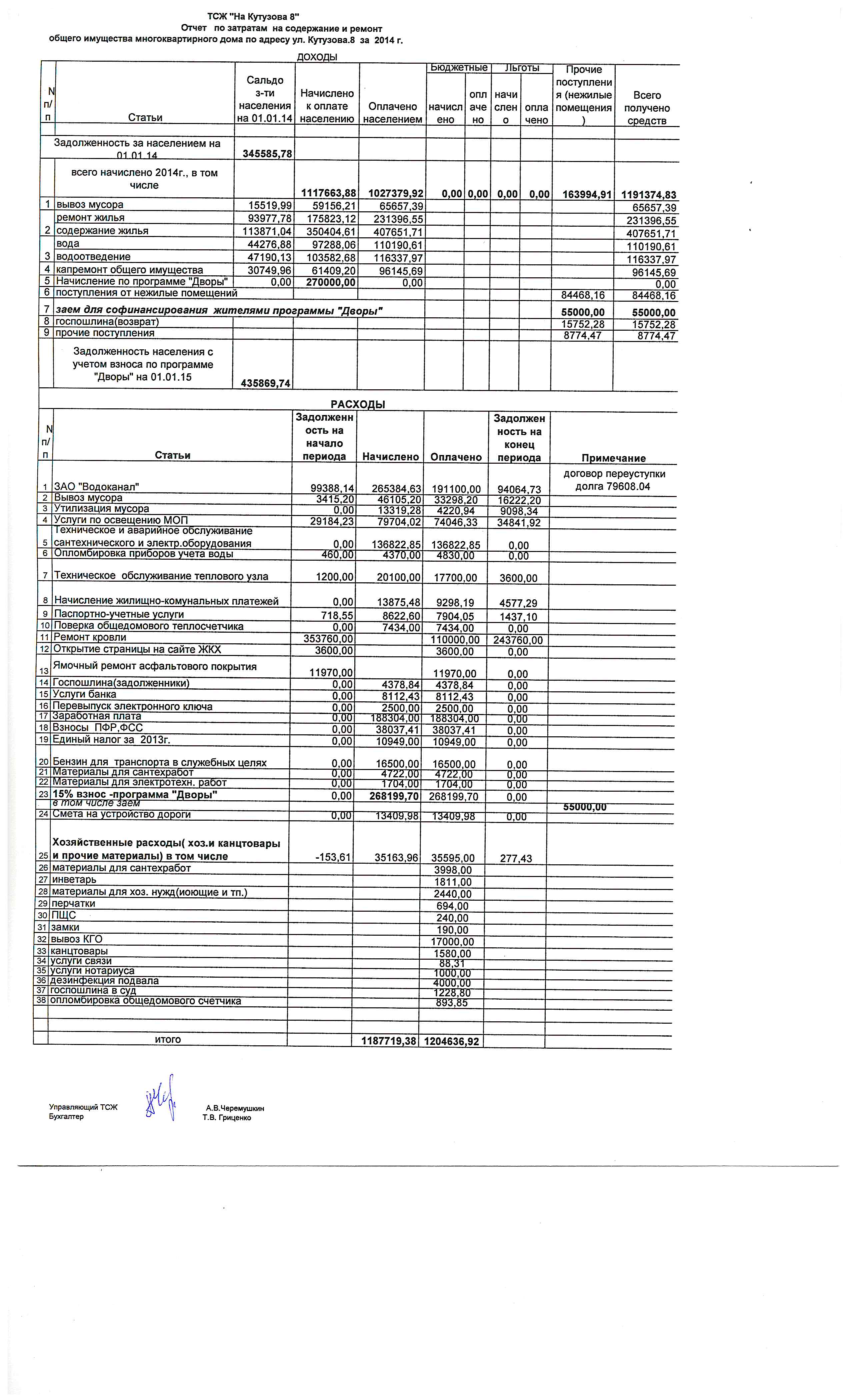 Отчет за 2014г ТСЖ На Кутузова 8 |