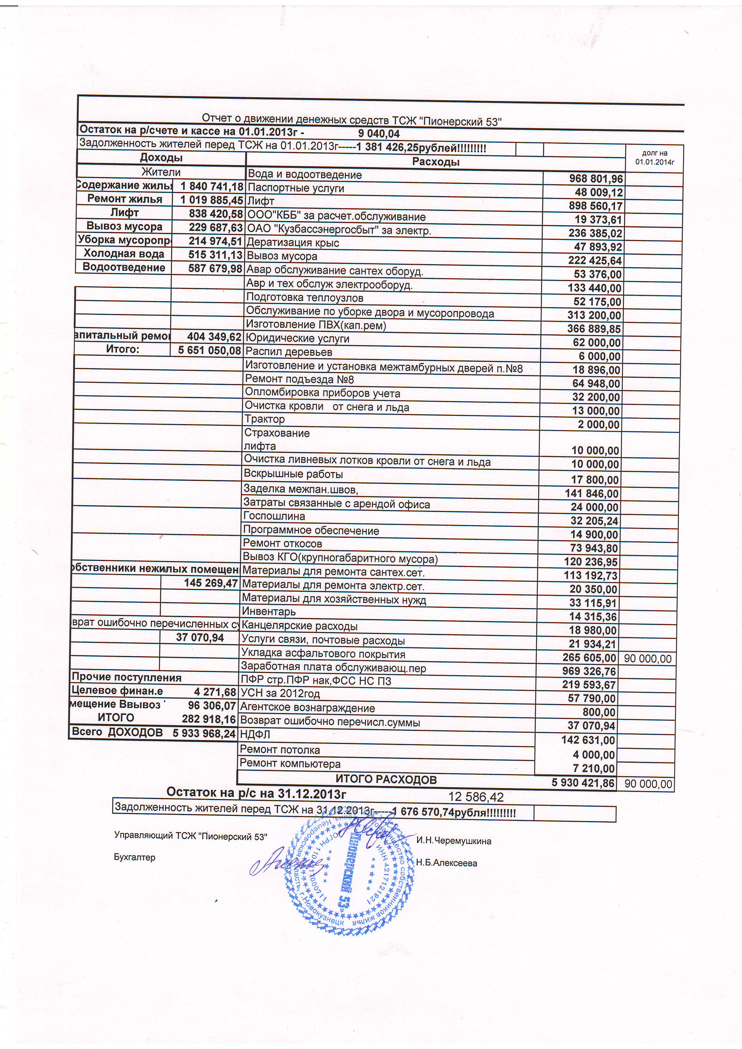 Отчет за 2013 год_ТСЖ Пионерский, 53 |