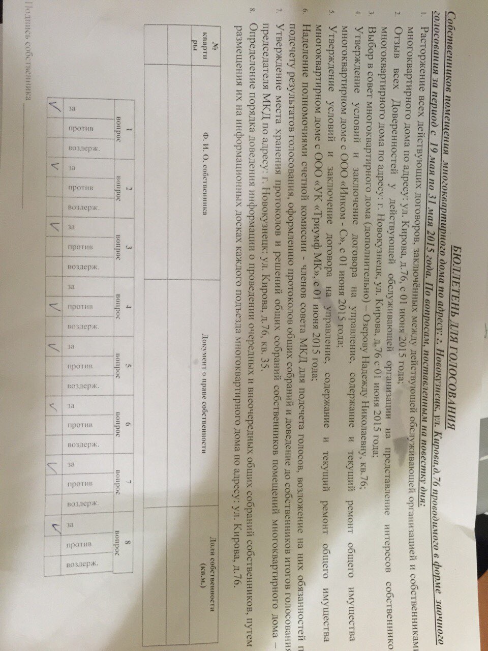 На каком основании УК "Триумф МК", носит по квартирам на подпись протокол, в котором уже все что надо написано и где надо проставлено? На каком основании распространяется клевета о том, что Старков вор и его компания худшая компания города? К кому можно обратиться что бы прекратить произвол и самоуправство Никульникова? Спасибо!