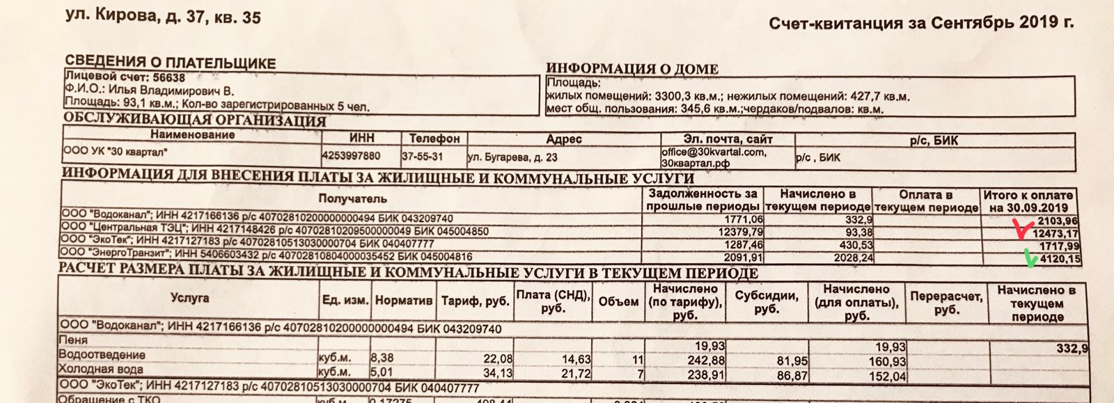 Добрый день! регулярно оплачиваю услуги отопления и горячего водоснабжения Энерготранзиту (подключен автоплатеж в СБ). ом не оборудован теплосчетчиком. В сентябре 2019г пришла квитанция от Жилкомцентра, в которой помимо начилений за указанные услуги Энерготранзита, вдруг еще появился долг в 12тр Центральной ТЭЦ!? и текущее начисление это организации 93 рубля - можно объяснить что это значит? в течении года никаких задолженностей перед центральной ТЭЦ и НАЧИСЛЕНИЙ даже НЕ БЫЛО!