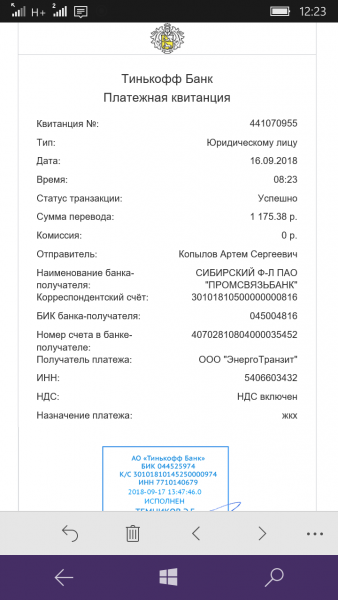 оплата за отопление и горячее водоснабжение по лицевому счету 233799 была проведена через Кузнецкбизнесбанк 18.082018 в 11:15 по местному времени в полоном объеме,А если Ваши специалисты плохо видят или играют за компьютером,то хоть бы в СМС указывали точный адрес ,куда можно обратиться для выяснения не оплаты,Организация новая,мы понимает,но нельзя сразу не разобравшись писать СМС,Всем хочется зарабатывать много и сразу!