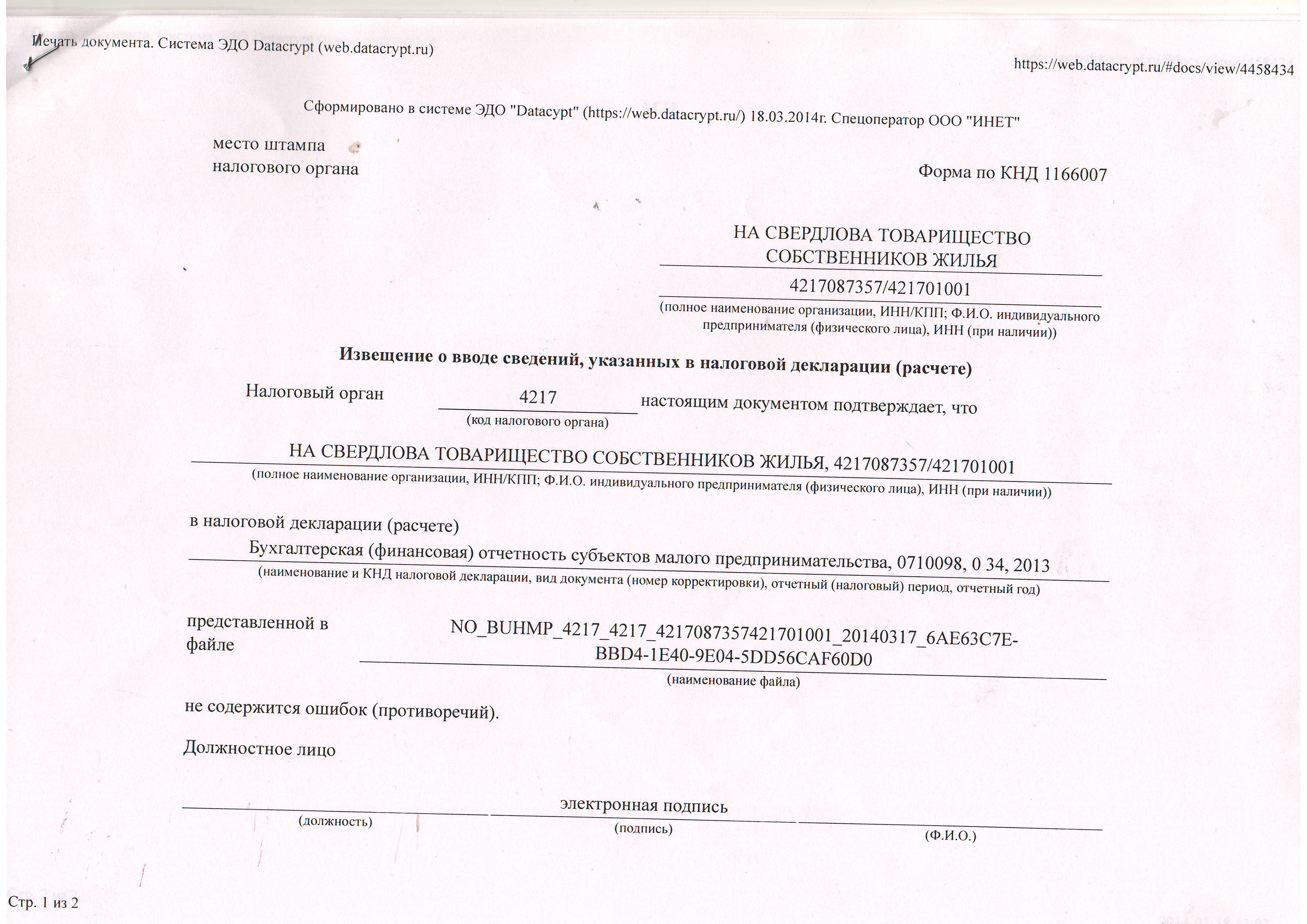 Налоговая декларация за 2013 год_ТСЖ На Свердлова_стр 1 |