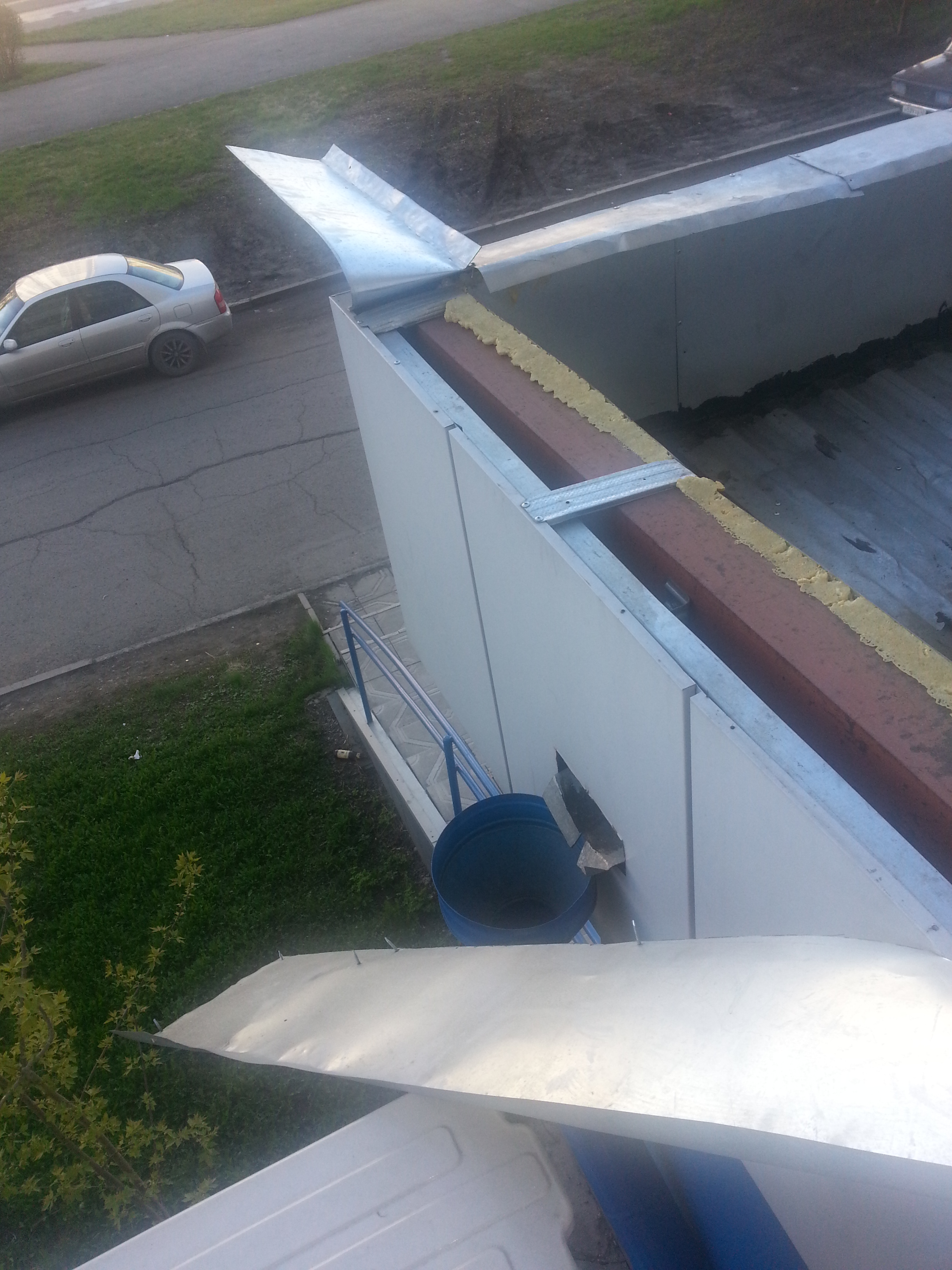 Я являюсь собственником квартиры по адресу: пр. Кузнецкстроевский, 44-77. Квартира расположена на 2 этаже в 3-м подъезде дома. Поскольку жилой дом находится в управлении ООО «Квартал на левом», обращаюсь к УК с просьбой решить следующий вопрос. На первом этаже дома расположено нежилое помещение. Помещение расположено частично под квартирой 78. Судя по закрытым жалюзи, помещение не эксплуатируется (магазин рядом с пивной). Козырек крыльца магазина находится в аварийном состоянии. Разрушена обшивка из оцинкованного железа. Обшивка оторвана и в нескольких местах висит буквально на одном шурупе. Часть железной обшивки свалилась по мою лоджию и нависает сверху на уличный блок кондиционера. При порывах ветра ударяет по блоку, чем может нанести (а может уже нанесен) вред моему имуществу, поскольку в результате скола краски, кондиционер начнет ржаветь. Более того, данная ситуация в принципе опасна для окружающих, т.к. крыльцо выходит на проспект, в непосредственной близости находится тротуар. Прошу принять меры к оперативному устранению аварийной ситуации. Обязать собственника помещения, либо силами УК провести демонтаж оторванной обшивки окончательно, либо закрепить на место. Фото прилагаю.