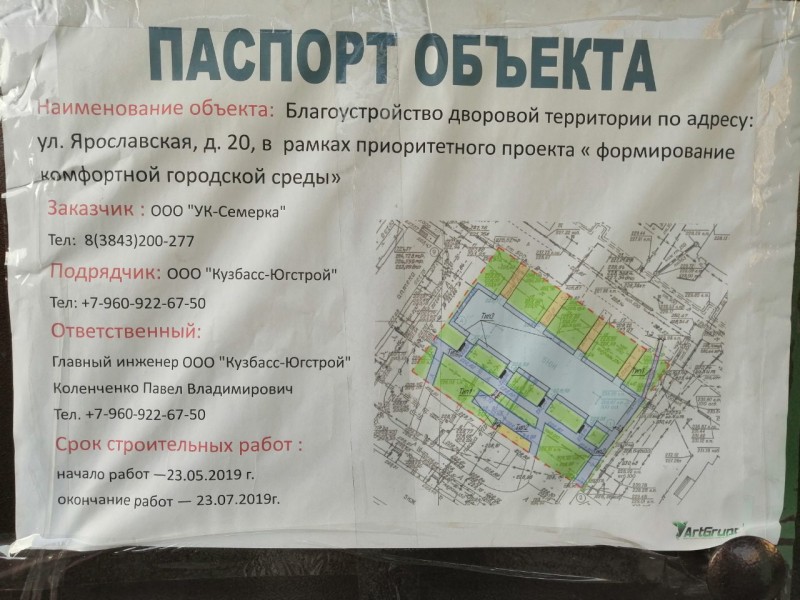 В настоящее время во дворе между домами: ул.Ярославская 18, ул.Ярославская 20 проводится ремонт дворов в рамках программы «Комфортная среда». В ходе ремонта сделана разбивка, завезены материалы для подсыпки, бордюры. Жителям предварительно показывали проект. Но из той серой картинки трудно было представить, что будет на самом деле. Возможно проект давно изменили в соответствии с пожеланиями жителей 18 дома по ул. Ярославской. На деле получается, что на детской площадке, установленной ЕЗРАЗом, будут уложены бетонные бордюры. Стоянка для автомобилей со стороны 18-го дома будет находиться в непосредственной близости от игрового оборудования площадки. В соответствии с ГОСТ Р 52301-2004 «Оборудование детских игровых площадок. Безопасность при эксплуатации», бордюров на площадке быть не должно. А стоянки для автомобилей разрешается устраивать не ближе 15 метров. За домом по ул.Ярославская 18 есть огромная заброшенная территория, несмотря на это, парковку обустраивают за счет детской площадки!