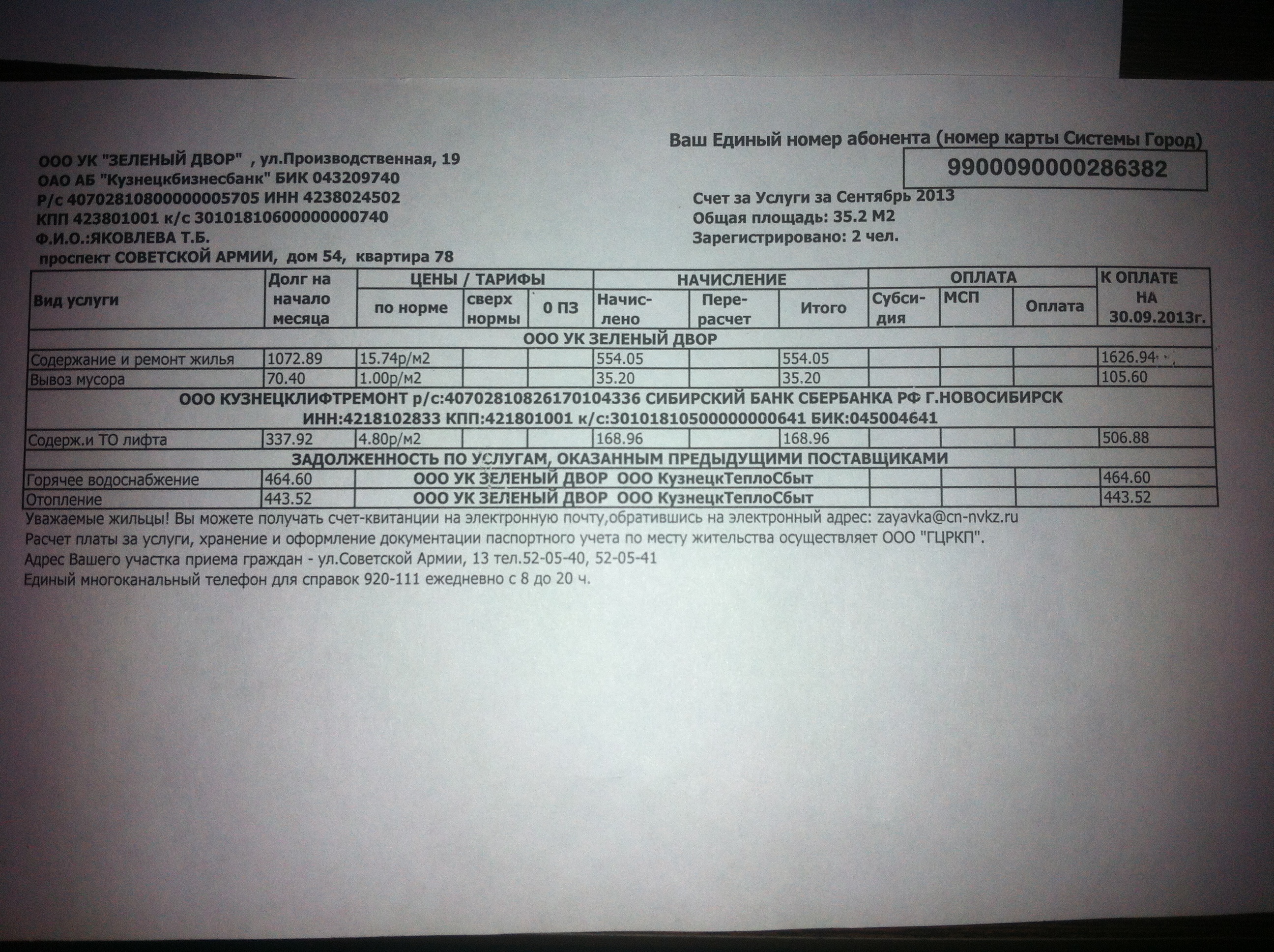 Здравствуйте. Через терминалы Сбербанка постоянно платила за горячую воду (и вообще все коммунальные). В этом месяце в терминале высвечивается два пункта по горячей воде...в одном долг, в другом переплата! Помогите разобраться, пожалуйста!