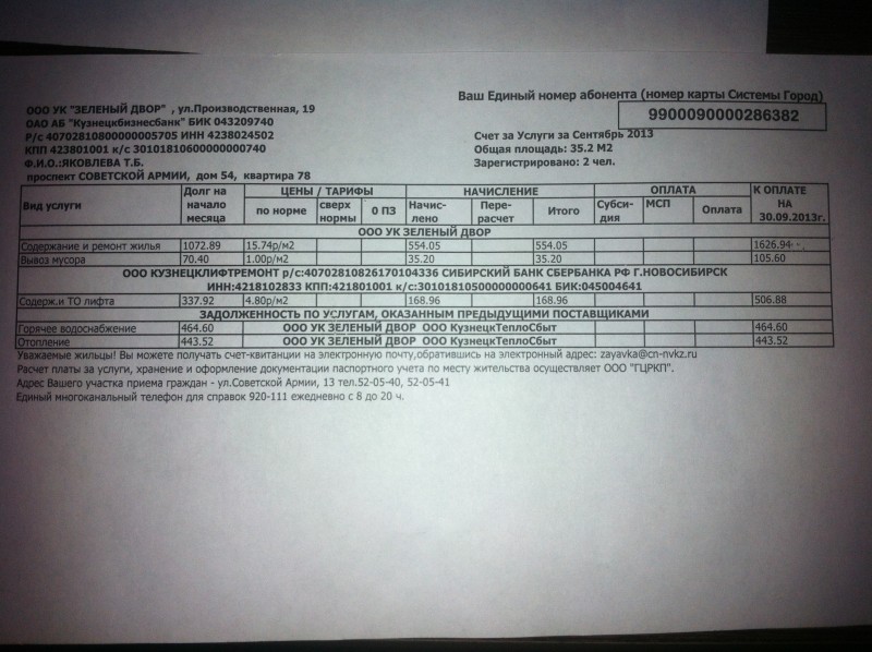 За предыдущим владельцем Чернышовой В.Т. числится задолженность.Принесли счет за декабрь 2012 г.и я не поняла, горячее водоснабжение, отопление, и за домофон надо платить ООО"Городская тепловая компания"?Почему нет этой компании в Сбербанк онлайн?