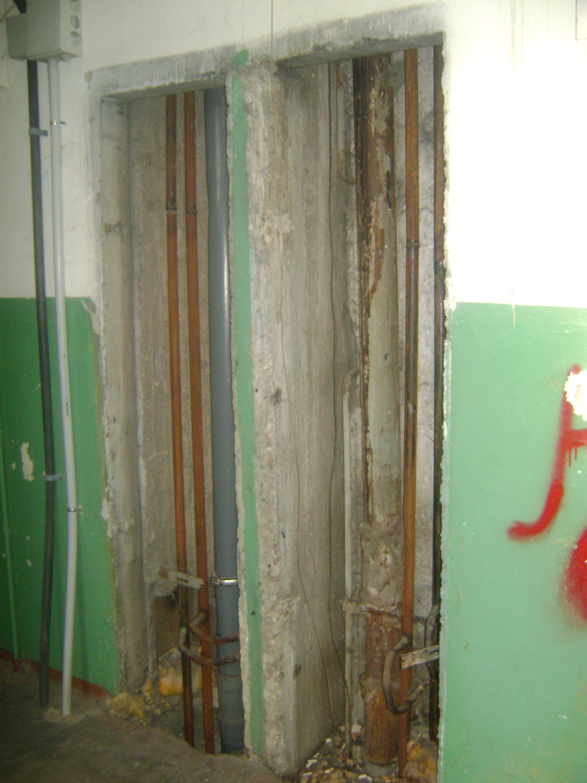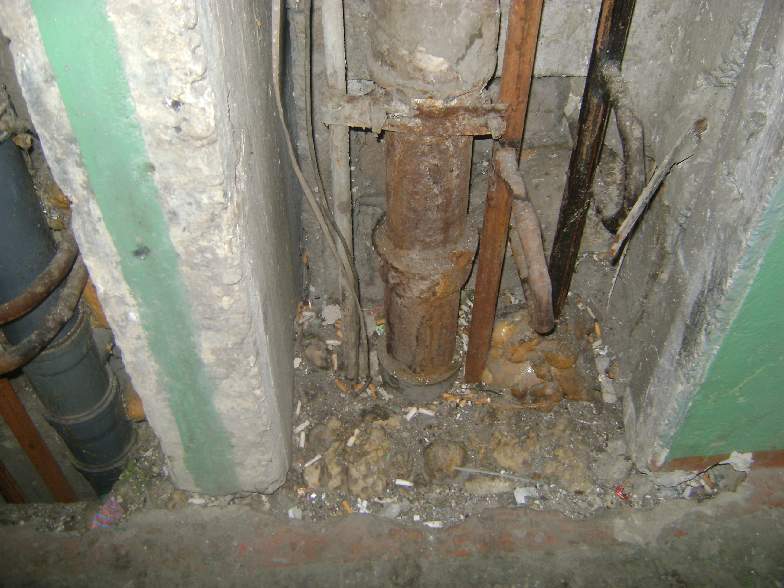 Так дом находится в ведоме Смирнова Виктора. На трубах хомуты или их до сих пор не заменили. Стены не ремонтированны, канализация не рабочая, сверху льётся канализация в треснувшую трубу. На фото видно, что где квартира его там всё спрятанно в щиты.