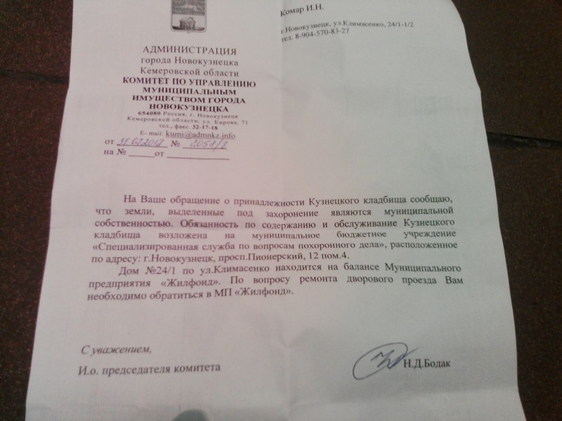 Мы выполняем обязательства по оплате коммунальных услуг, платим за ремонт и содержание дома и прилегающей территории. Надеемся на добросовестность, отзывчивость и честность с Вашей стороны. В противном случае нам придётся обратиться с жалобой в жилищную инспекцию и мэру города за помощью в решении общей проблемы жильцов нашего дома.