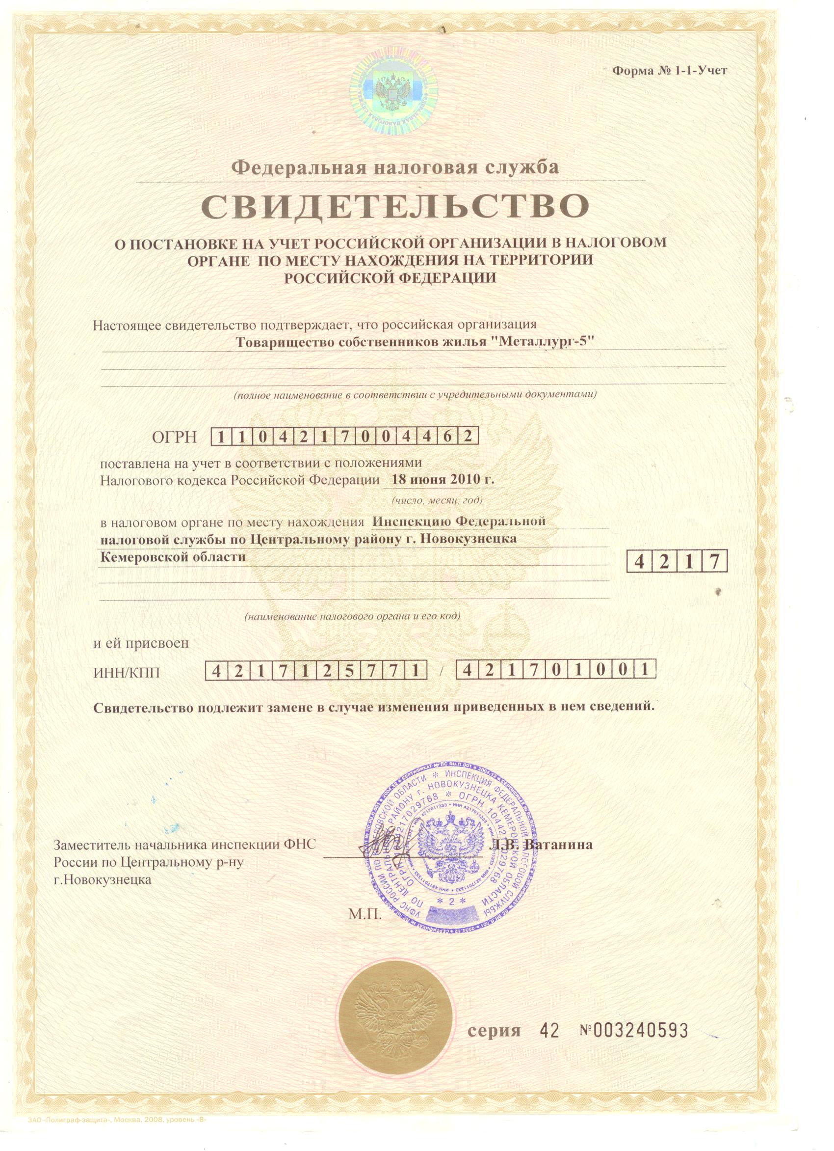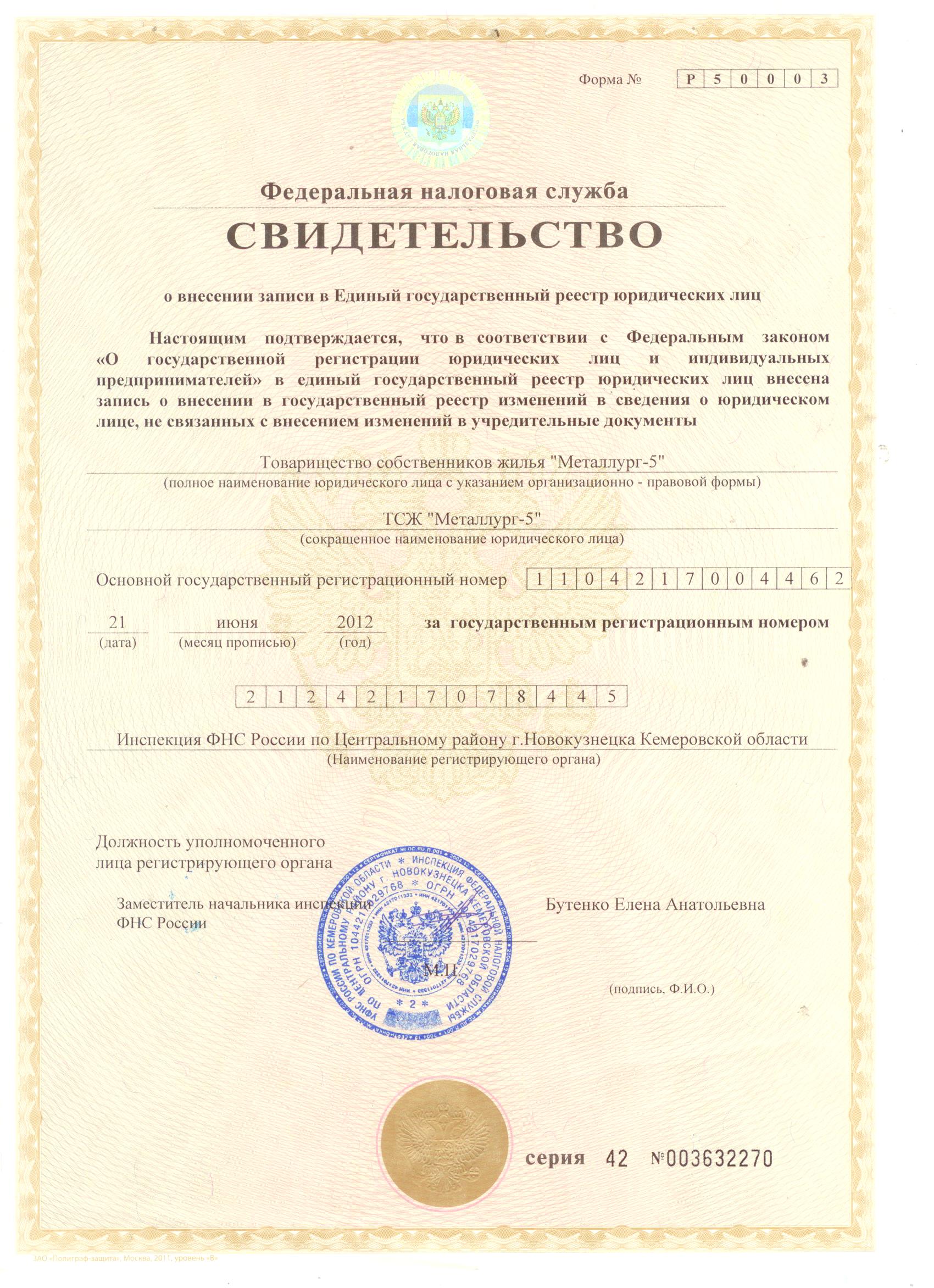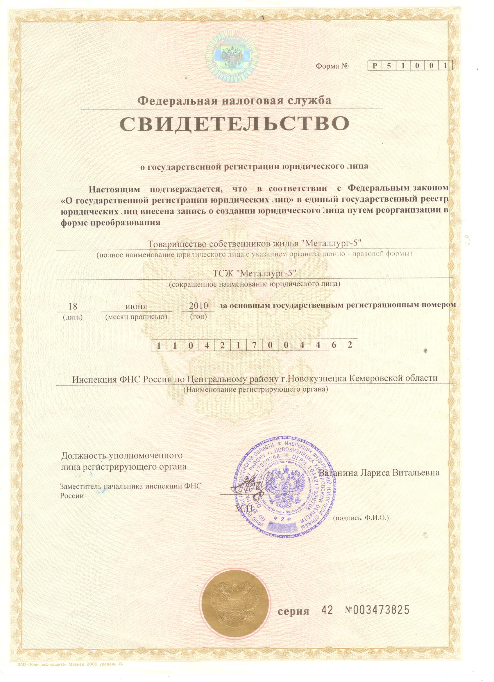 Свидетельство о внесении записи в ЕГРЮЛ_ТСЖ Металлург-5 |