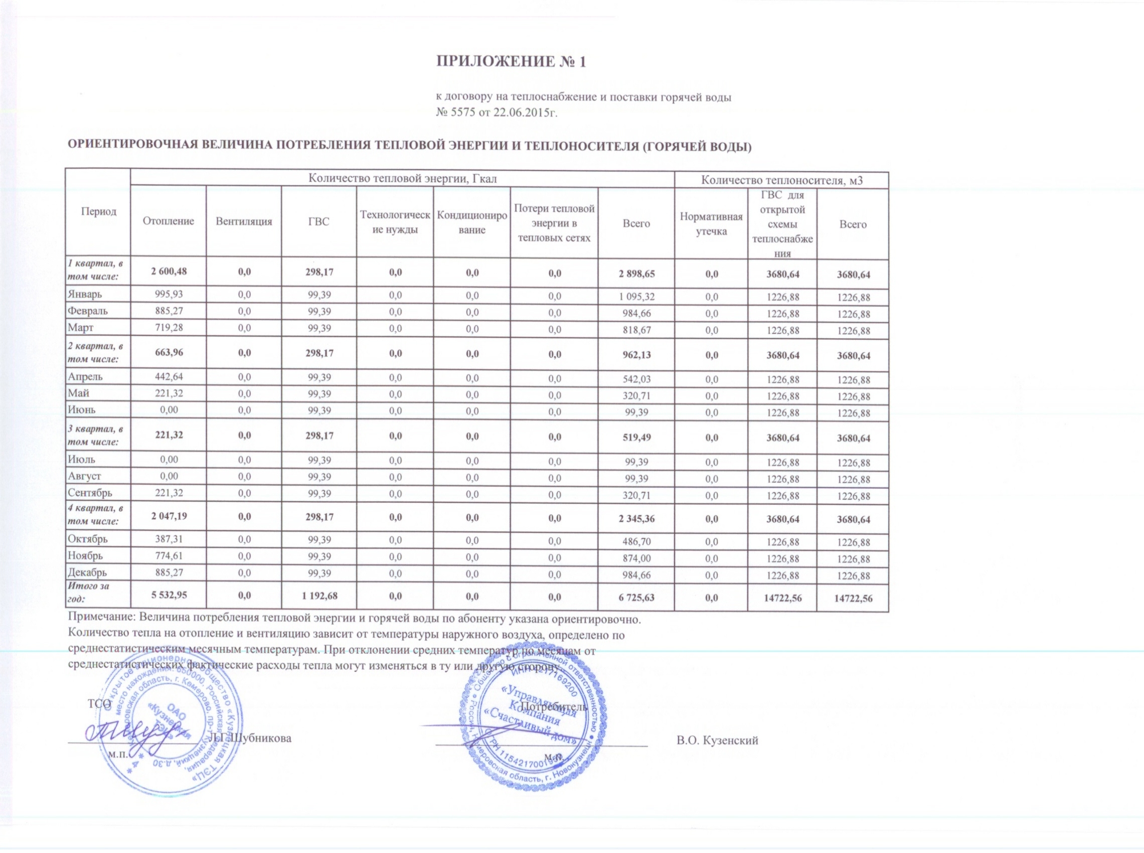 Приложение №1 к Договору №5575 Теплоснабжение и поставка ГВ 014 |