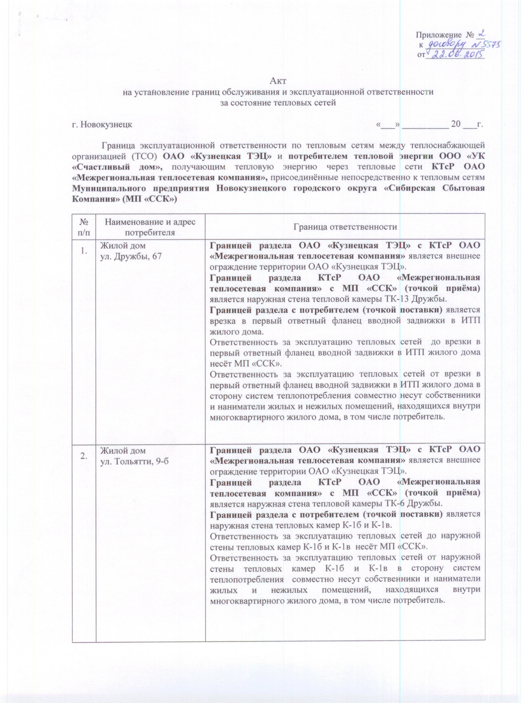Приложение №2 Акт к Договору №5575 Теплоснабжение и поставка ГВ |