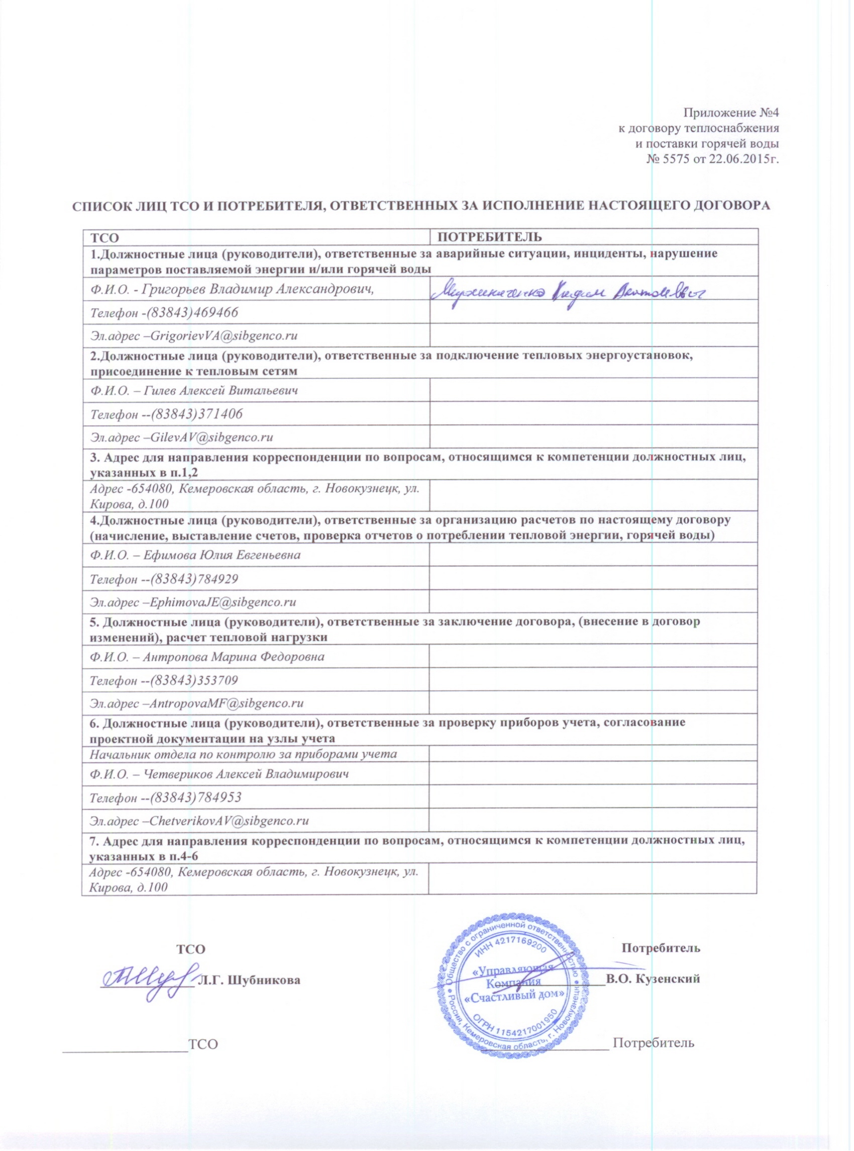 Приложение №4 к Договору №5575 Теплоснабжение и поставка ГВ 016 |