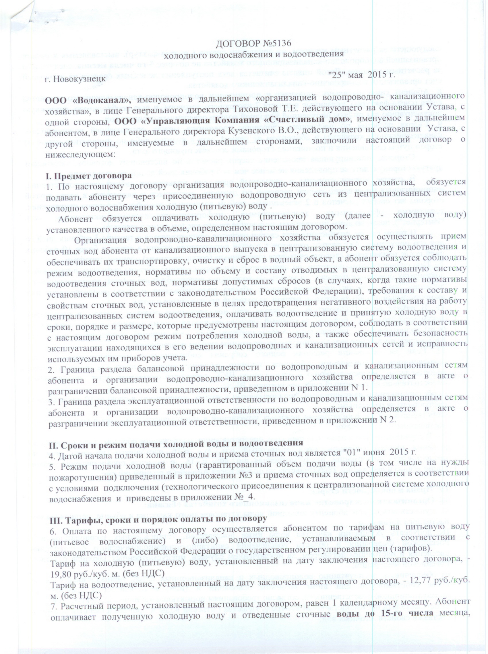 Договор №5136 холодного водоснабжения и водоотведения 002 |