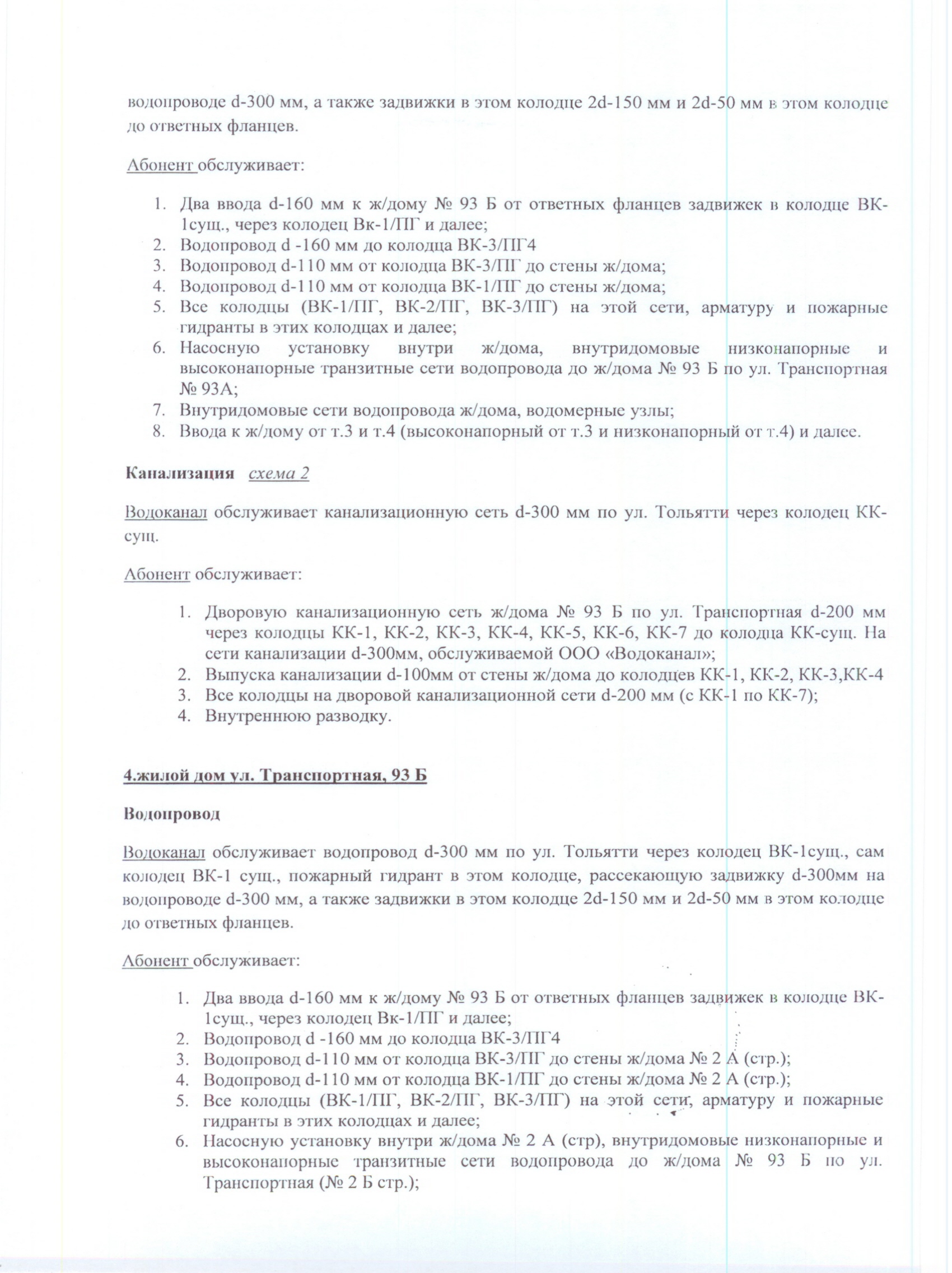 Схема №1 к Договору №5136 холодного водоснабжения и водоотведения |