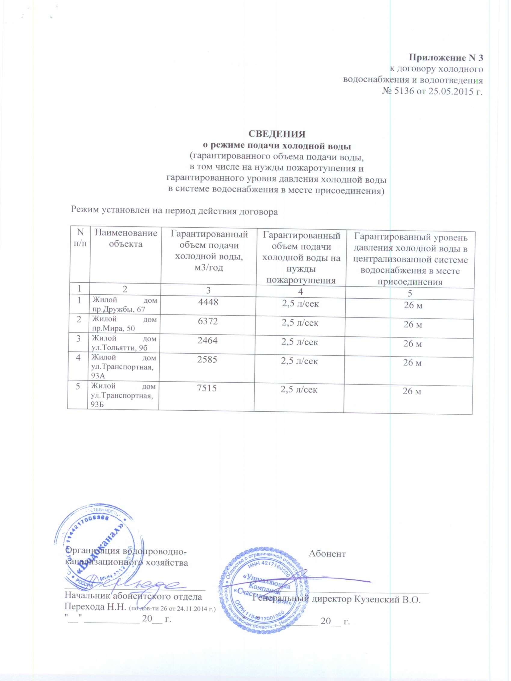 Договор №5136 холодного водоснабжения и водоотведения 003 |