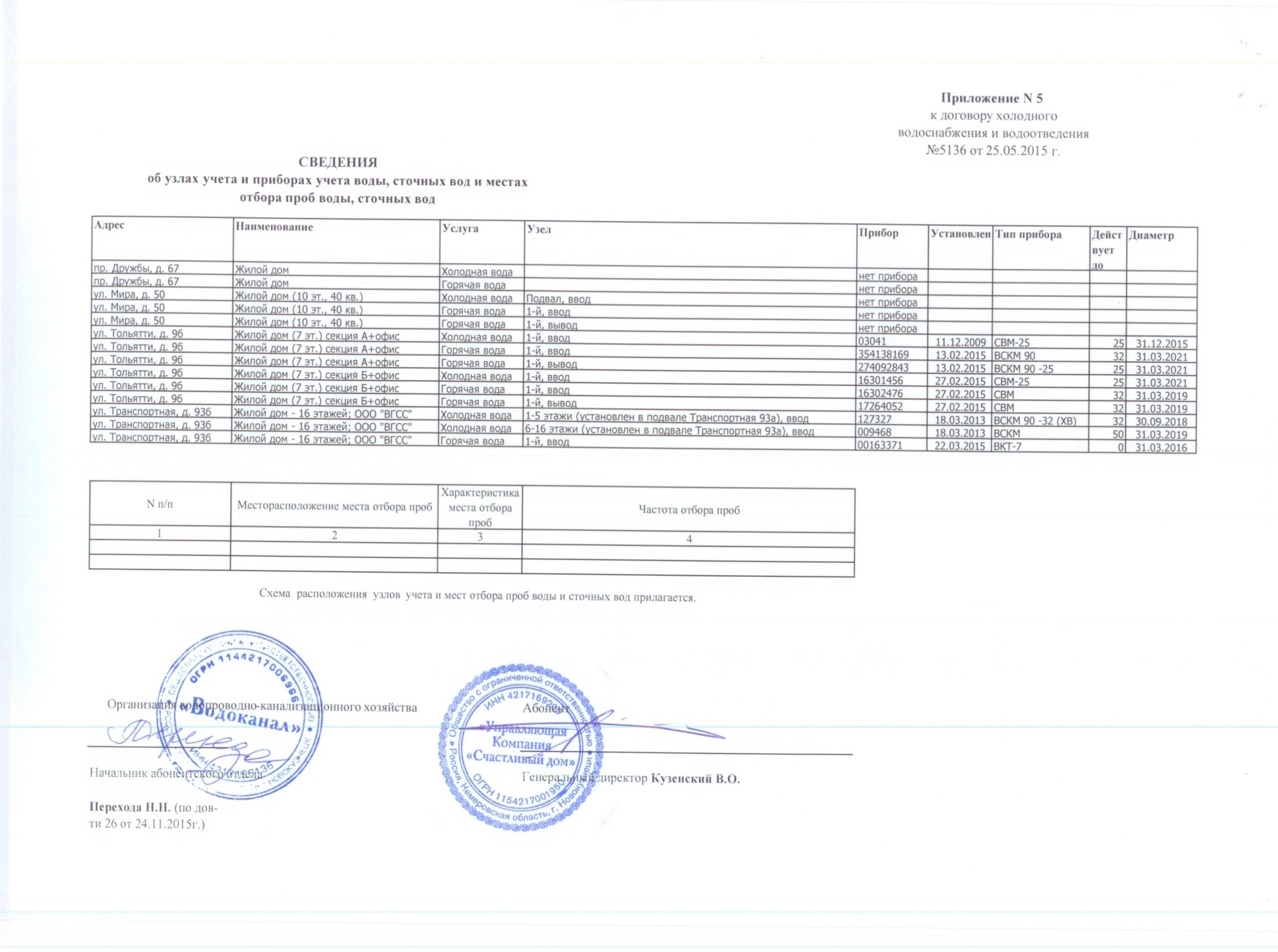 приложение №5 к Договору №5136 холодного водоснабжения и водоотведения 018 |