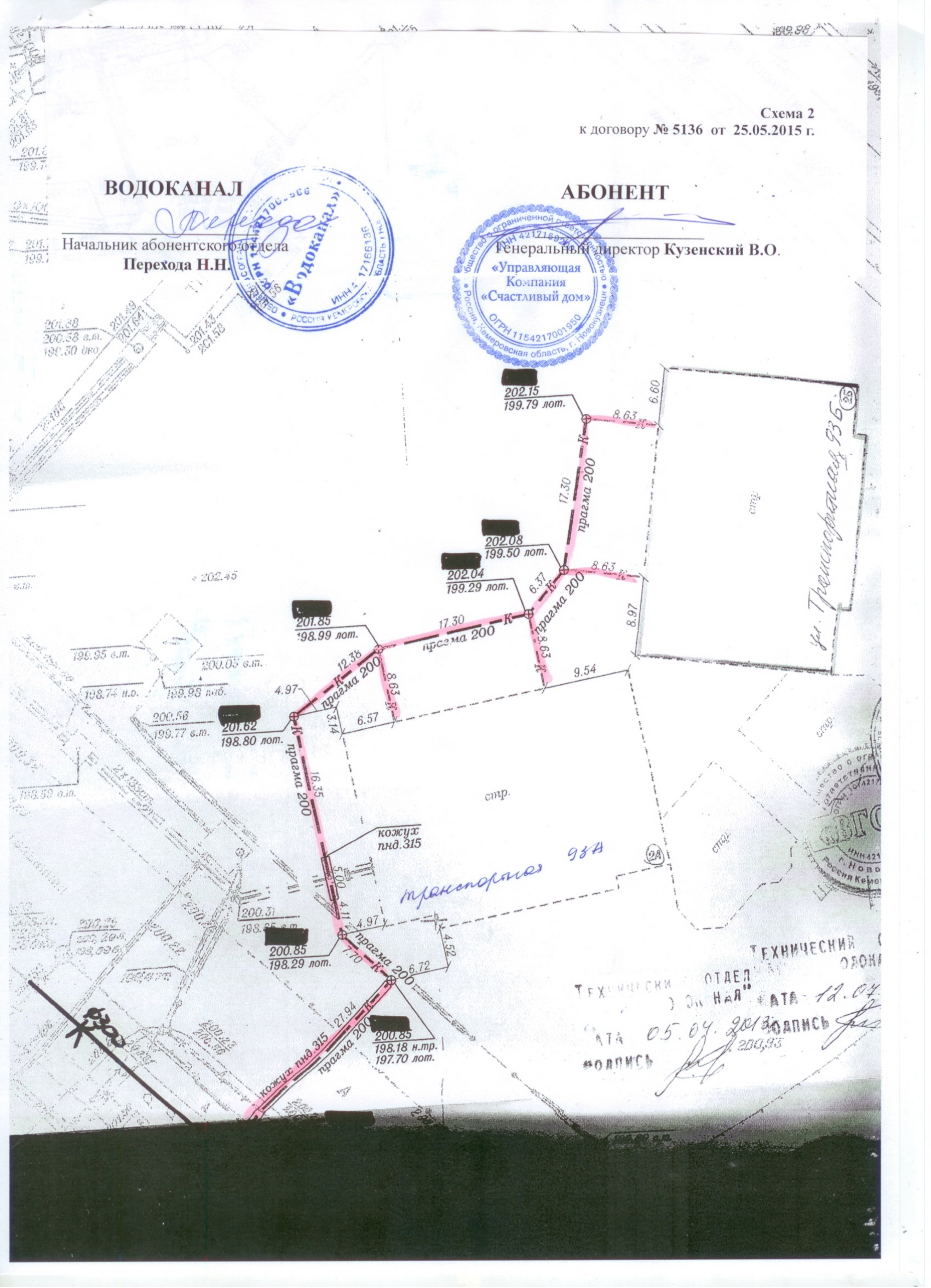 Схема №2 к Договору №5136 холодного водоснабжения и водоотведения 019 |