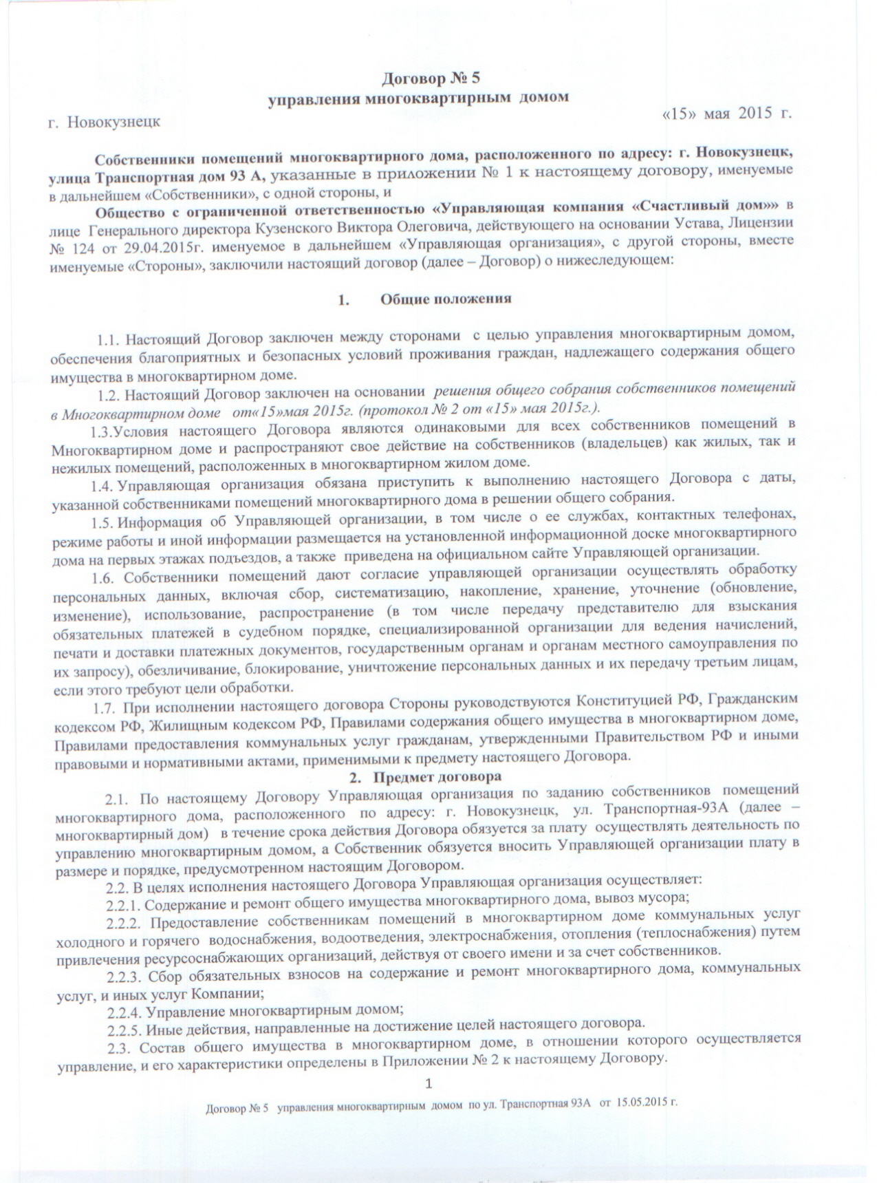 Договор управления и др. документы МКД Транспортная, 93 А.