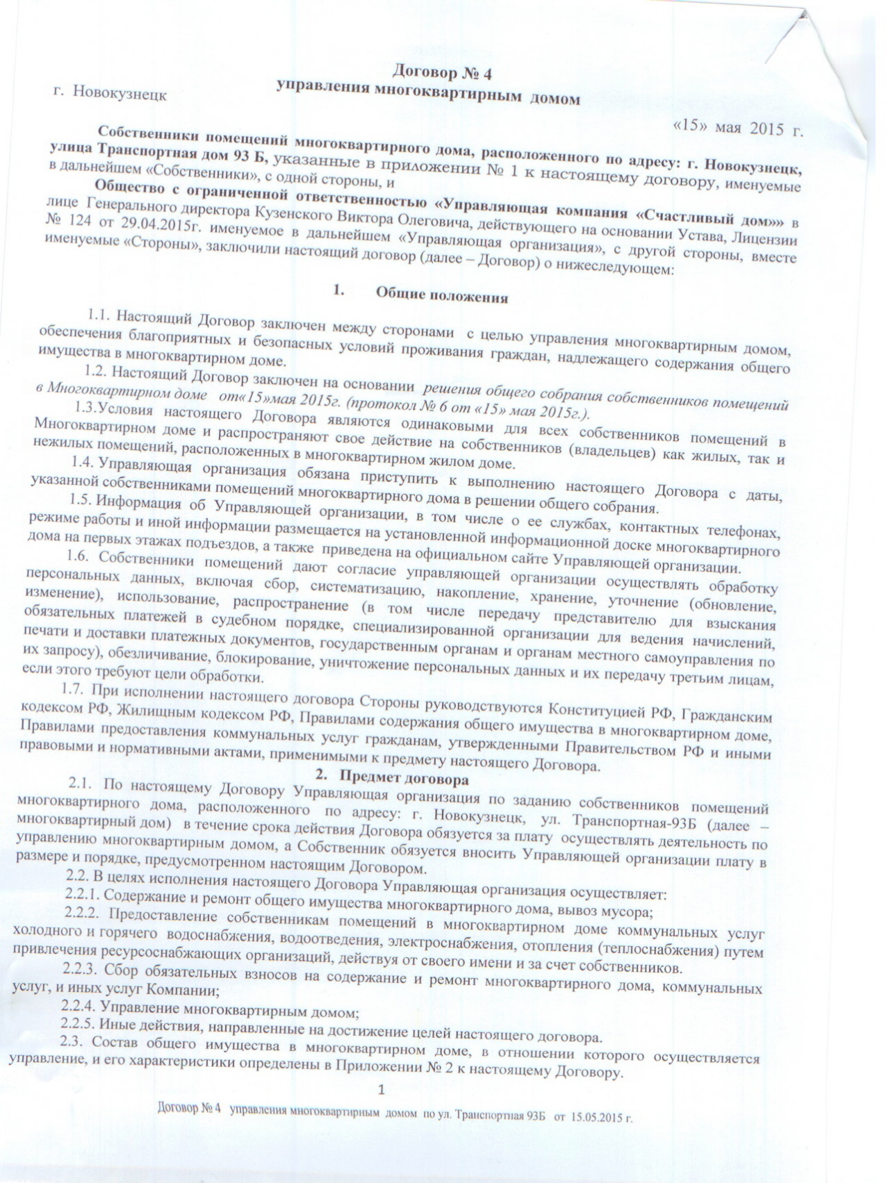 Договор управления и др. документы МКД Транспортная, 93 Б.